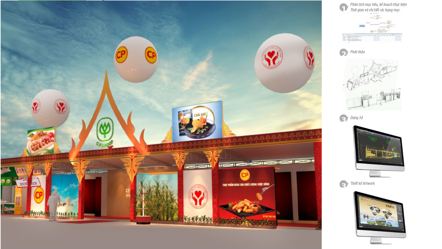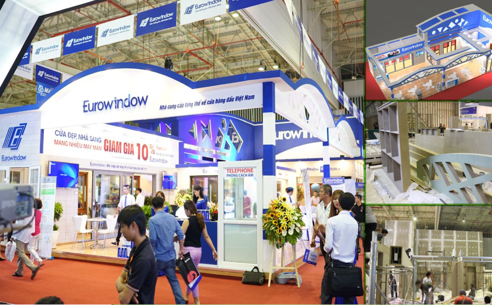 Với gần 20 năm kinh nghiệm, số lượng khách hàng trên 700 và với số lượng gian hàng đã thực hiện trên 1000 gian hàng, chúng tôi sẽ đảm bảo mang lại hiệu quả về đầu tư, đẹp và chuẩn về nhận diện thương hiệu, cũng như sáng tạo tối đa trong thời gian kiểm soát....để khách hàng chỉ tập trung vào sản phẩm hay dịch vụ của mình vào gian hàng cho tốt nhất,