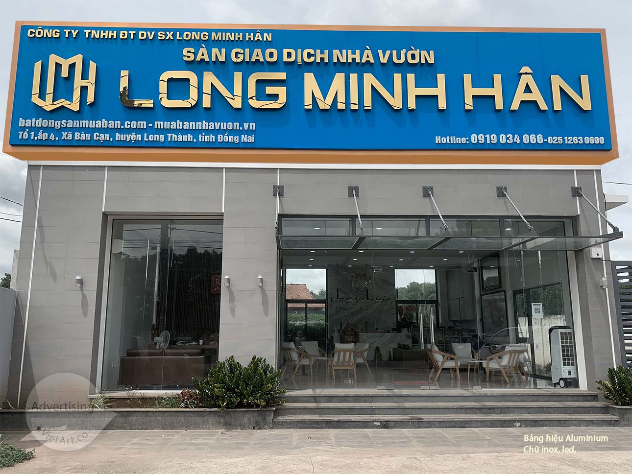 Bảng hiệu aluminium, logo mica led, lam nhôm xanh
